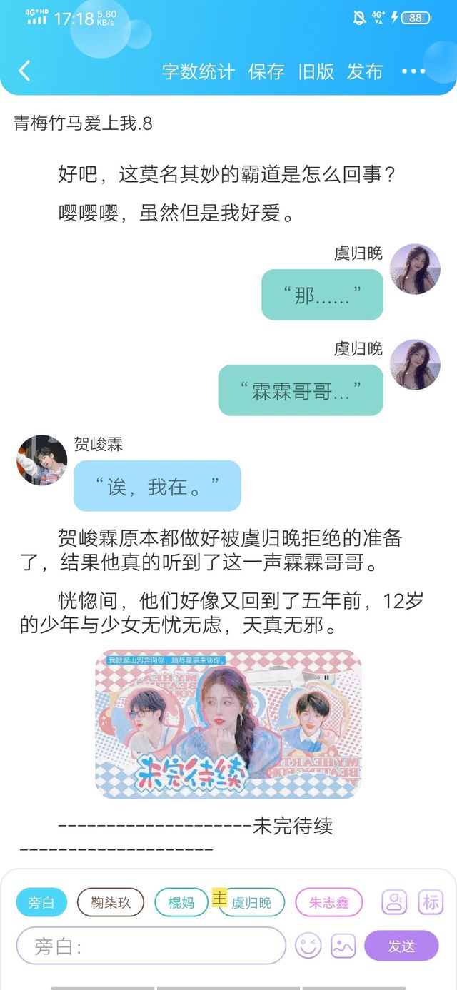 棍妈“这章的话就是讲贺峻霖和虞归晚的之前。”
