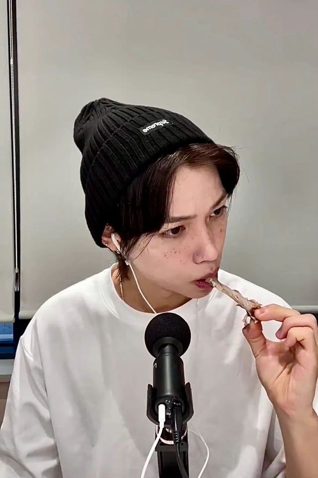 李龙馥在今天(08.13)vlive的直播里吃了炸鸡!