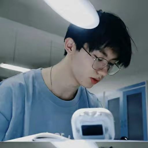 黑发少年软软搭在额前刘海下方是被薄薄一层镜片所挡住的自信,冷然却愈显摄人心魄的乌黑凤眸色蓝色T恤衬得身材颀长挺拔