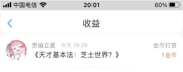 感谢责编立夏打赏的1个金币