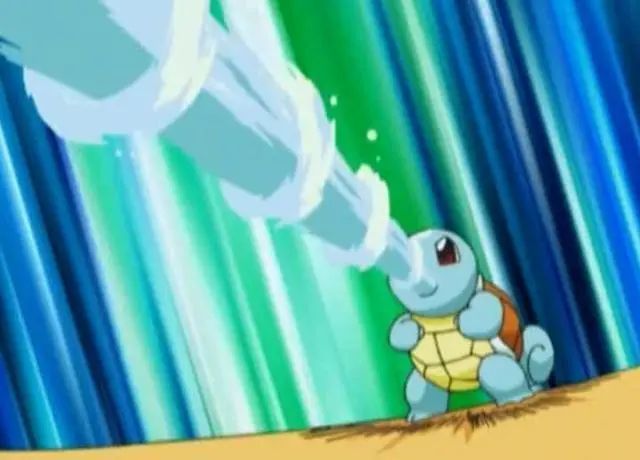 杰尼龟顿时火冒三丈,对着电击怪就使用出技能水枪攻击。