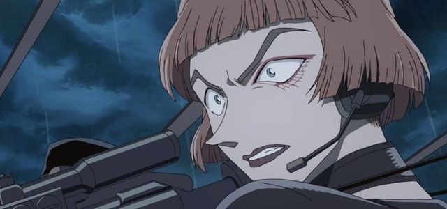大楼对面的酒店房间中,基安蒂从瞄准镜里看到对面楼中的目标倒地,嘴角上扬得意。