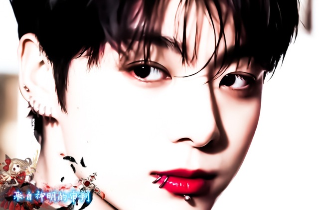 他脖颈的线条修长且流畅,喉结处点缀着一颗细小的痣,在冷白肤色的映衬下,竟隐隐透出几分性张力与脆弱,耳骨上嵌着五枚银环,两枚黑色耳钉如同弯曲的脊椎骨,被牢牢钉在耳朵上,散发出一种疯狂而残虐的堕落美感,那气息让人不禁联想到旧世纪那些以自虐与狂热燃烧生命、游走在社会边缘的亚文化先驱者们,那是你从未涉足的世界,因而你无法抑制自己的目光,一次次不由自主地投向他。