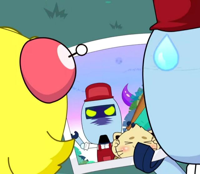 凌辰出了宅家门后,花心超人和粗心超人在看电视,小心超人在一旁自己玩着魔方,宅博士在打电话