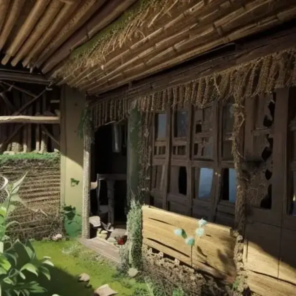 村民们将他们安顿在一间茅草屋,自此之后,跛子每天去修大坝,疯婆子每日关在家中。