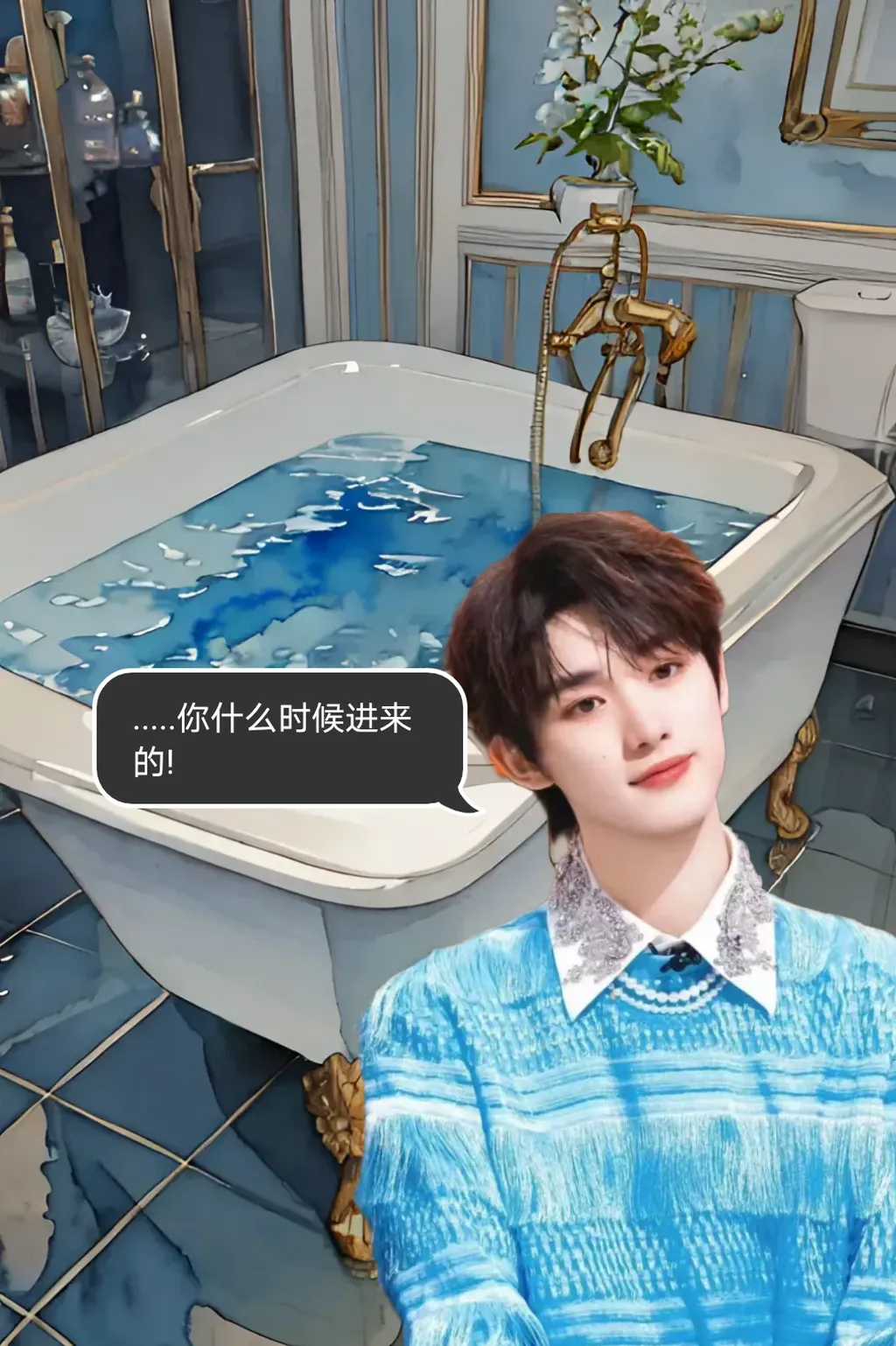 浴室里的水声响起,马嘉祺穿着西装缓缓打开门,丁程鑫似乎没有听见开门的声音,他回头准备冲一下后背,慢慢抬眼看见了站在门口的马嘉祺,他立马从旁边将浴巾抽过来,捂住自己的身子。