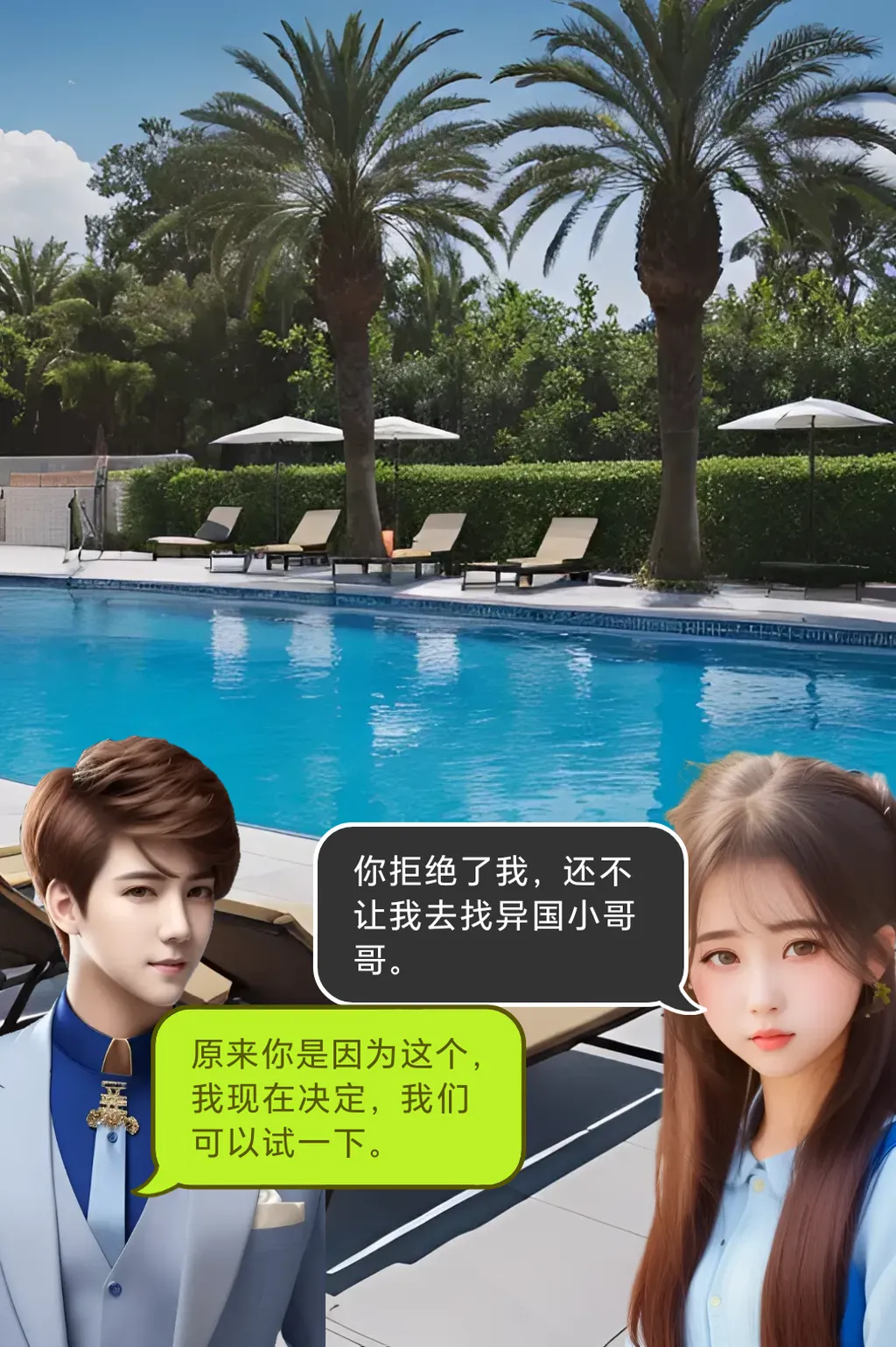 在管家的安排下,我迅速地入住了一家全球闻名的高级酒店。 别的不说,这家酒店里,帅哥随处可见。 犹豫了一秒,我斥巨资买了一身比基尼和一副太阳镜,以最快的速度梳妆打扮后,步入泳池区。