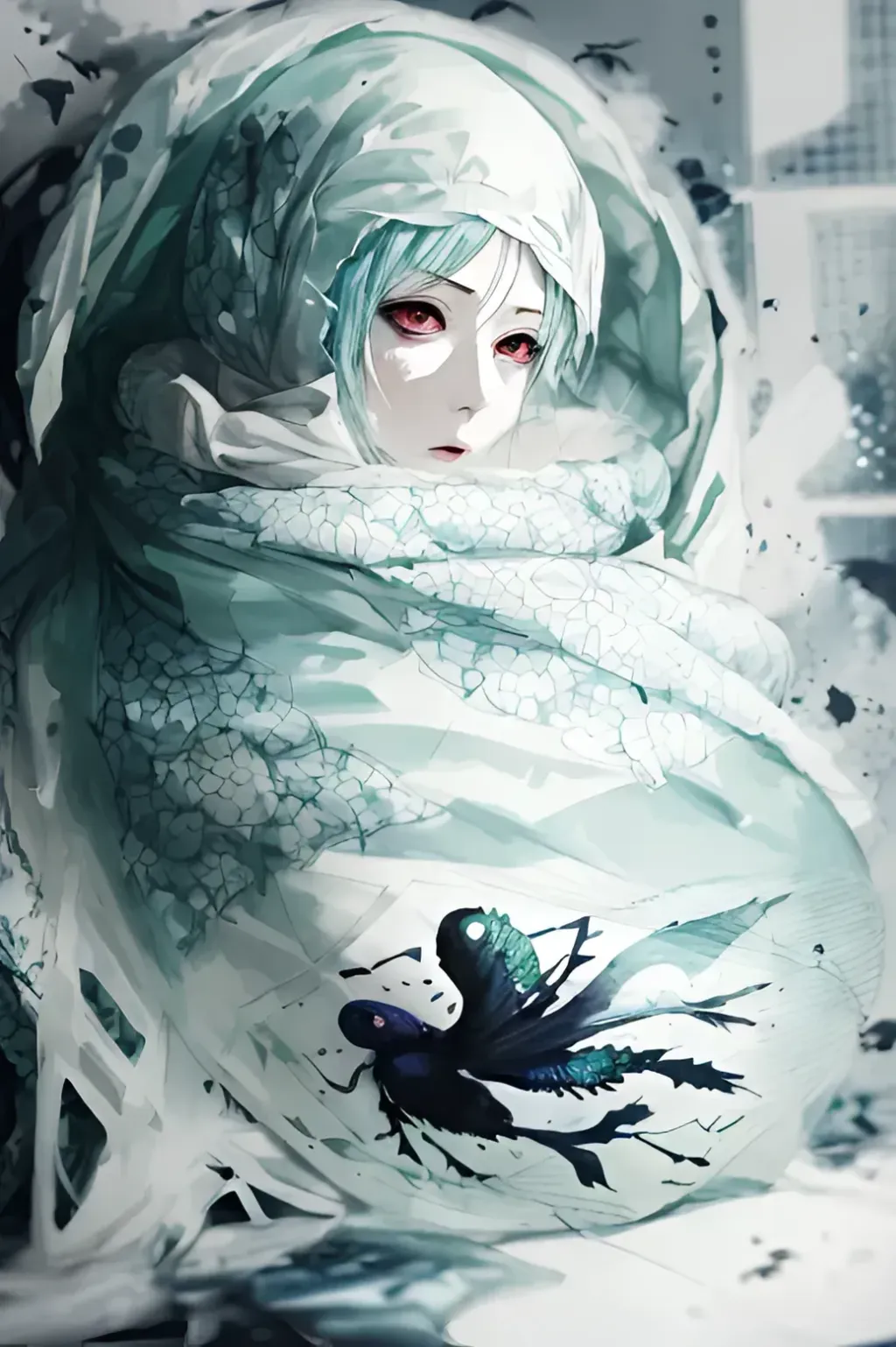 一只巨大的蝴蝶,从她身上煽飞而过,翅膀上的血迹滴落在地上,染成了一片暗红色。