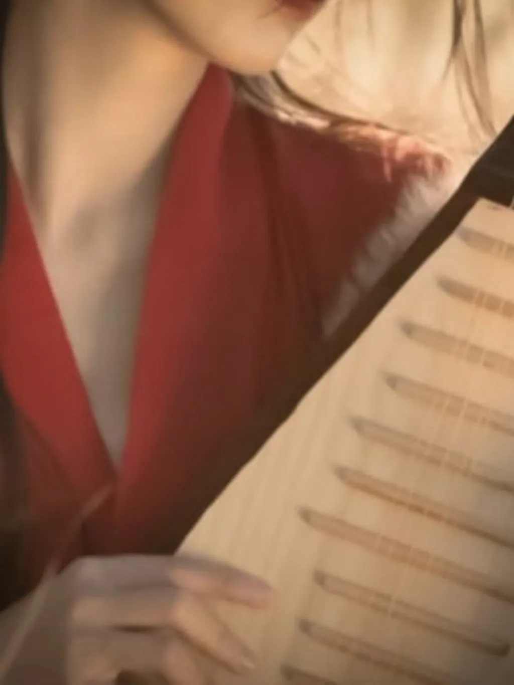 艳丽妖艳的女子坐于屏风后,指尖婉转轻弹琵琶,美妙旋律悦耳动听。