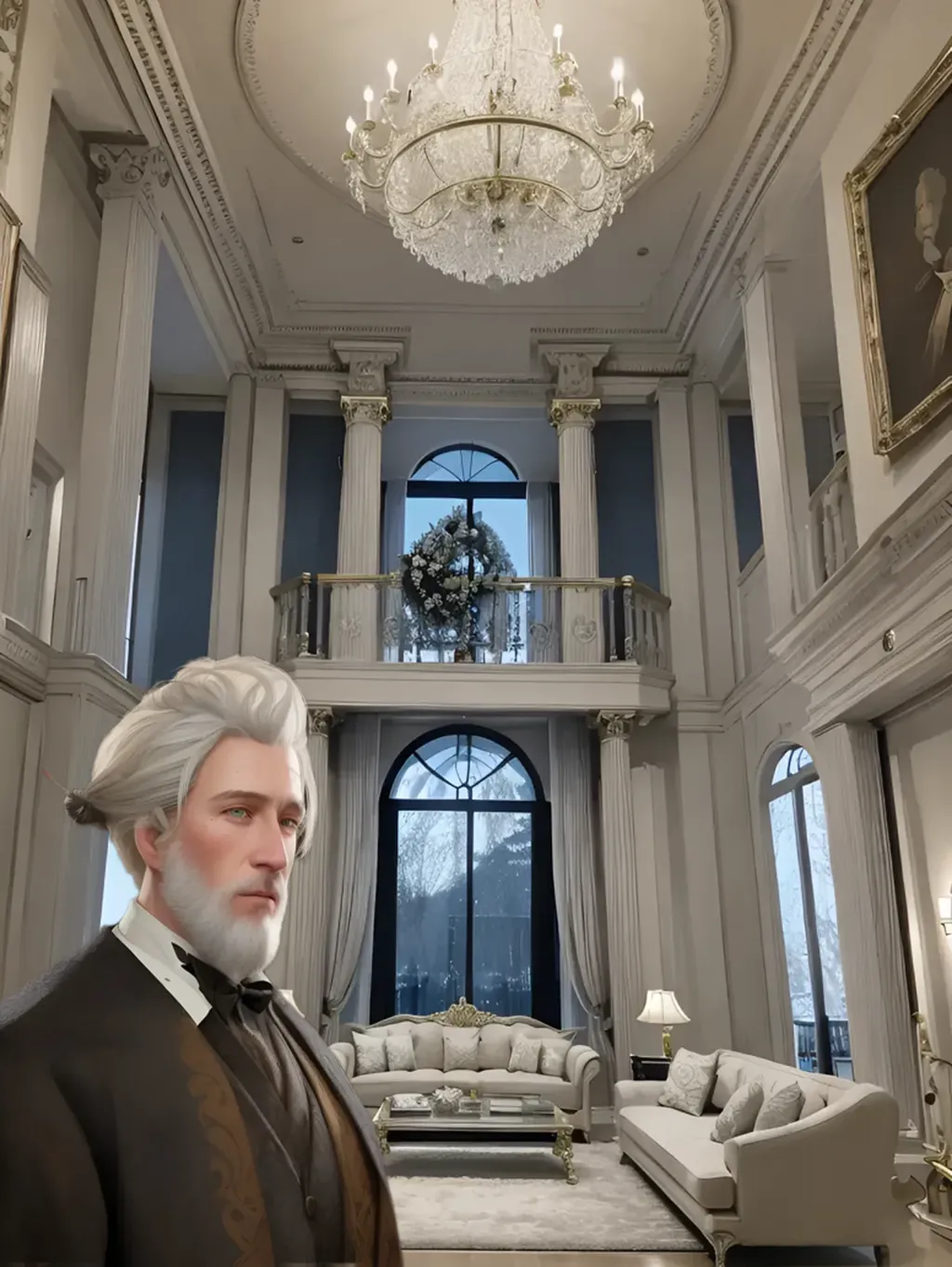 爷爷笑哈哈地拉我进门。 这别墅很大,里面的装修风格是中西结合。 庄严豪华。