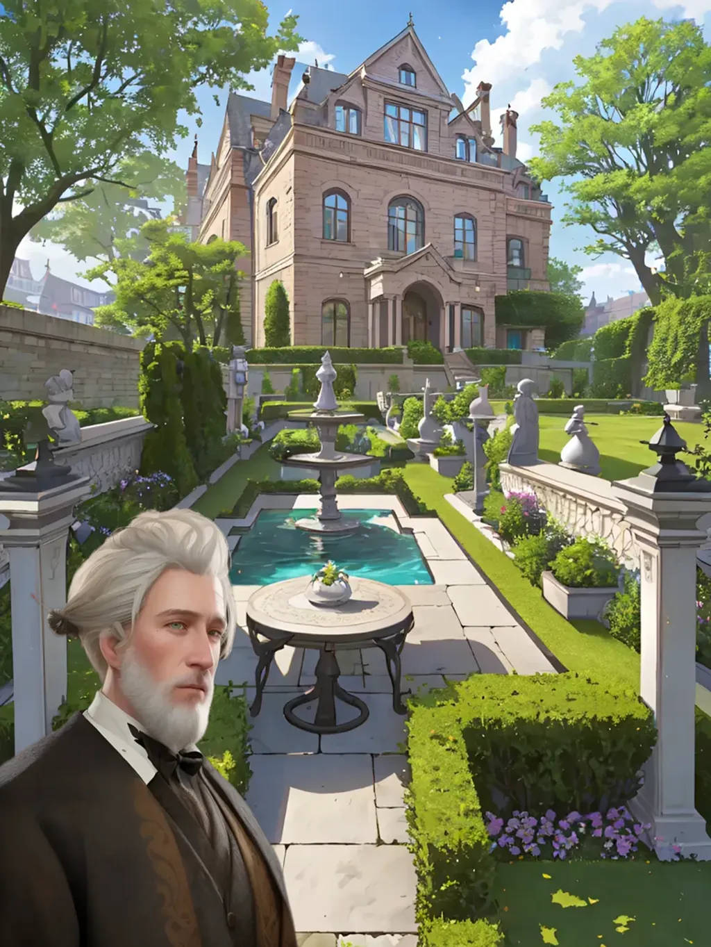 一列佣人的尽头站着一位头发花白,穿着西装笑得和蔼的小老头就是我爷爷啦。