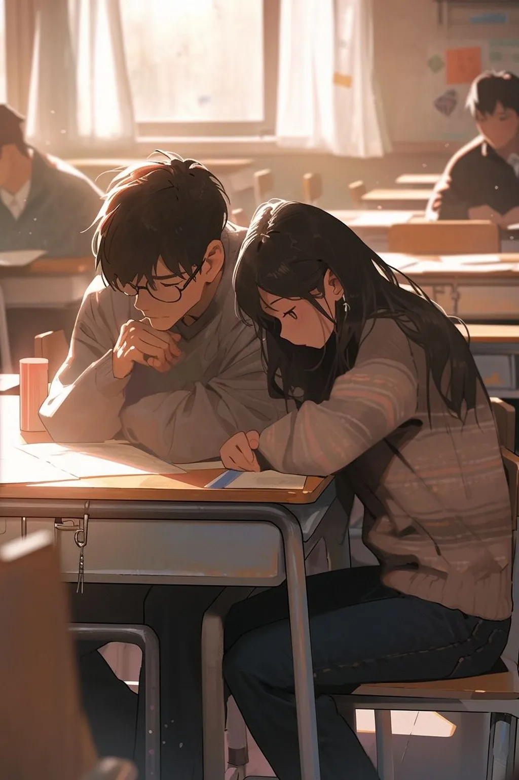 突然,他抱住了我,温柔地说:“我也喜欢你,从第一次见你就喜欢上了。”我心中一阵激动,抬头看着他,我们的目光交汇在了一起。从那时起,我们成了公认的情侣。在教室里,在校园里,我们总是形影不离,互相关心,互相支持。我们的感情也日益深厚,如同教室里的阳光一样温暖而甜蜜。