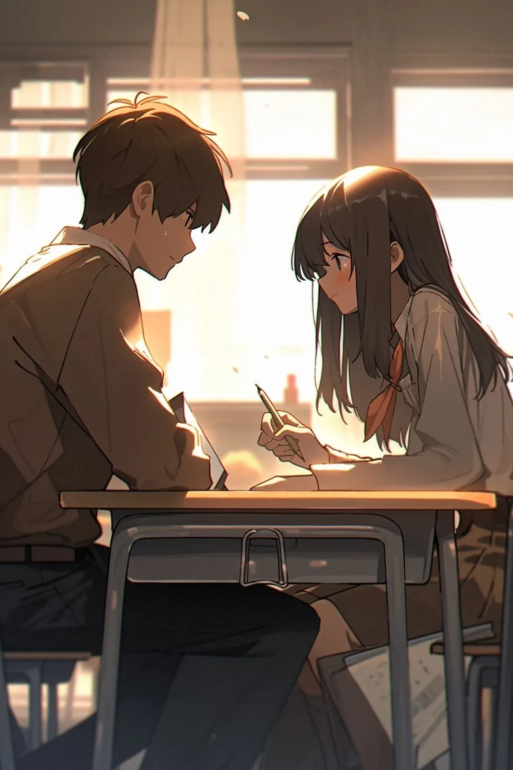 清晨的阳光透过窗户洒在教室里,映照在我和班长身上。班长是个阳光开朗的男孩,总是让人感觉很温暖。