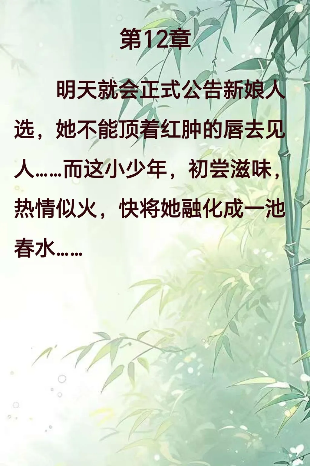 明天就会正式公告新娘人选,她不能顶着红肿的唇去见人……而这小少年,初尝滋味,热情似火,快将她融化成一池春水……