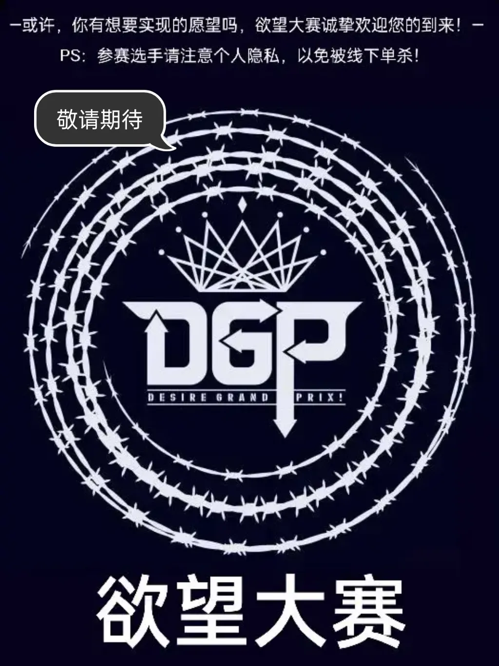 【谨记,请参赛选手注意个人隐私,参赛选手在现实世界中死亡,欲望大赛主办方概不负责,因此参赛选手在现实世界请注意人身安全,在此祝您参赛愉快~】