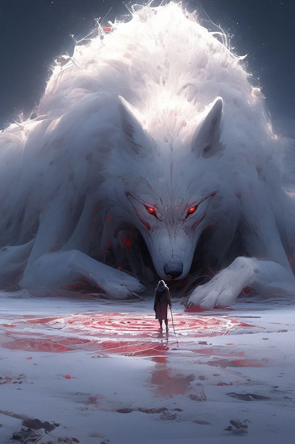 在冰天雪地的环境中,孤寂的血月苍狼孤独地徘徊着。