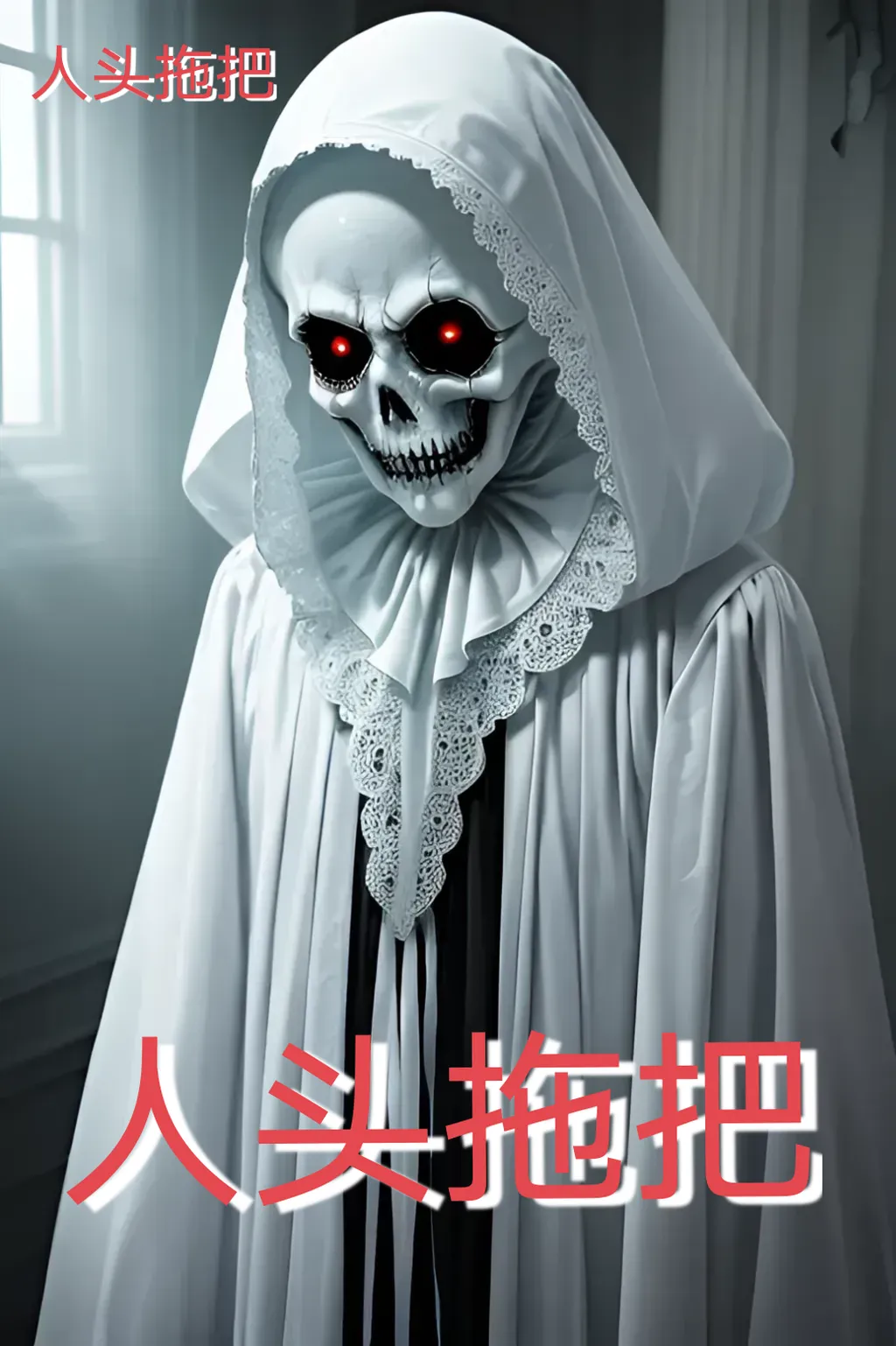 而是一个黑色的人头,被她用来拖地的,是那颗人头的长发。