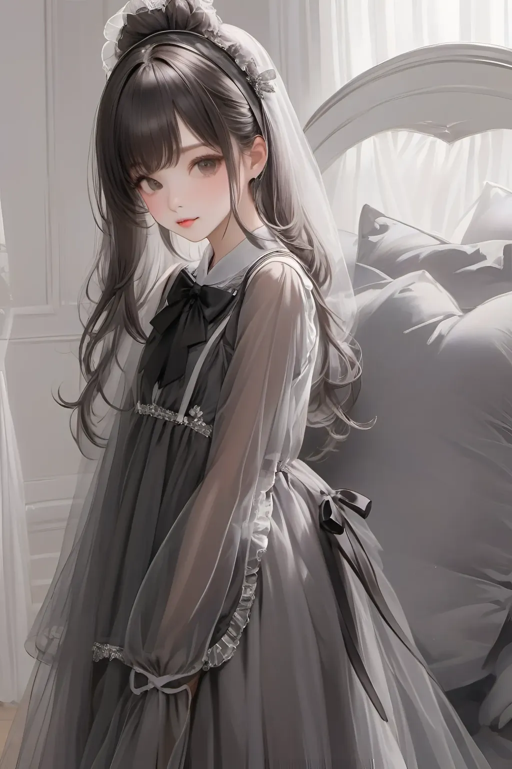 美丽如画的女子,身姿高雅,步履轻盈。她穿着一袭长裙,站在窗前,望着远方的远方。她的眼神深邃而迷人,仿佛在思考着什么。