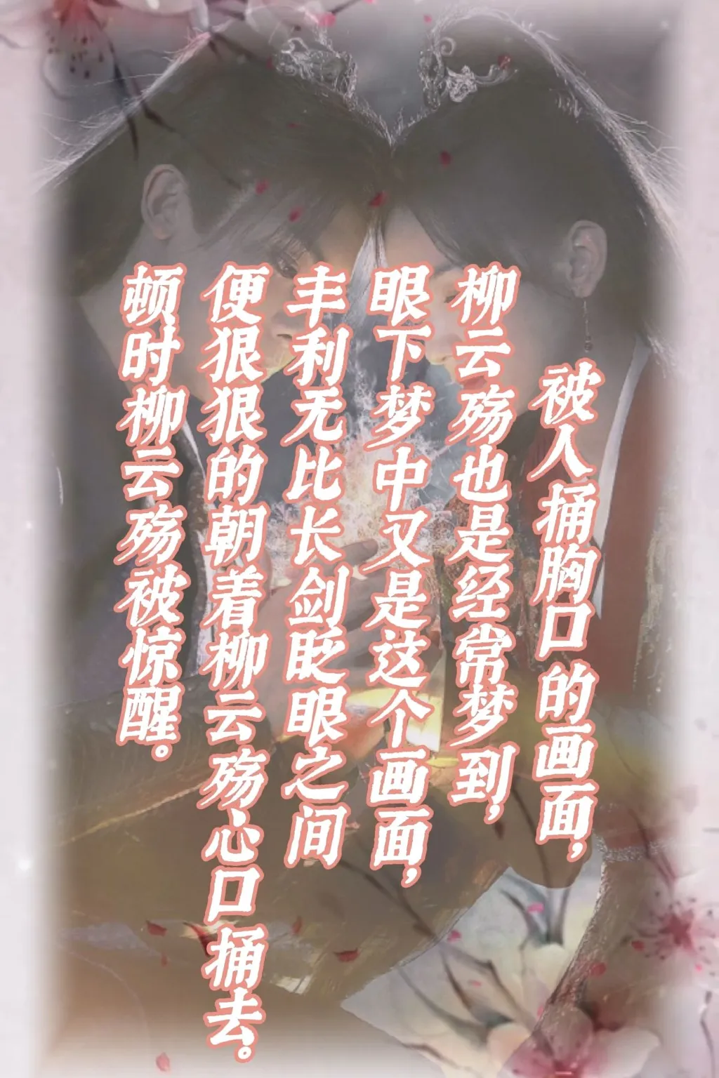 被人捅胸口的画面,柳云殇也是经常梦到,眼下梦中又是这个画面,丰利无比长剑眨眼之间便狠狠的朝着柳云殇心口捅去。顿时柳云殇被惊醒。