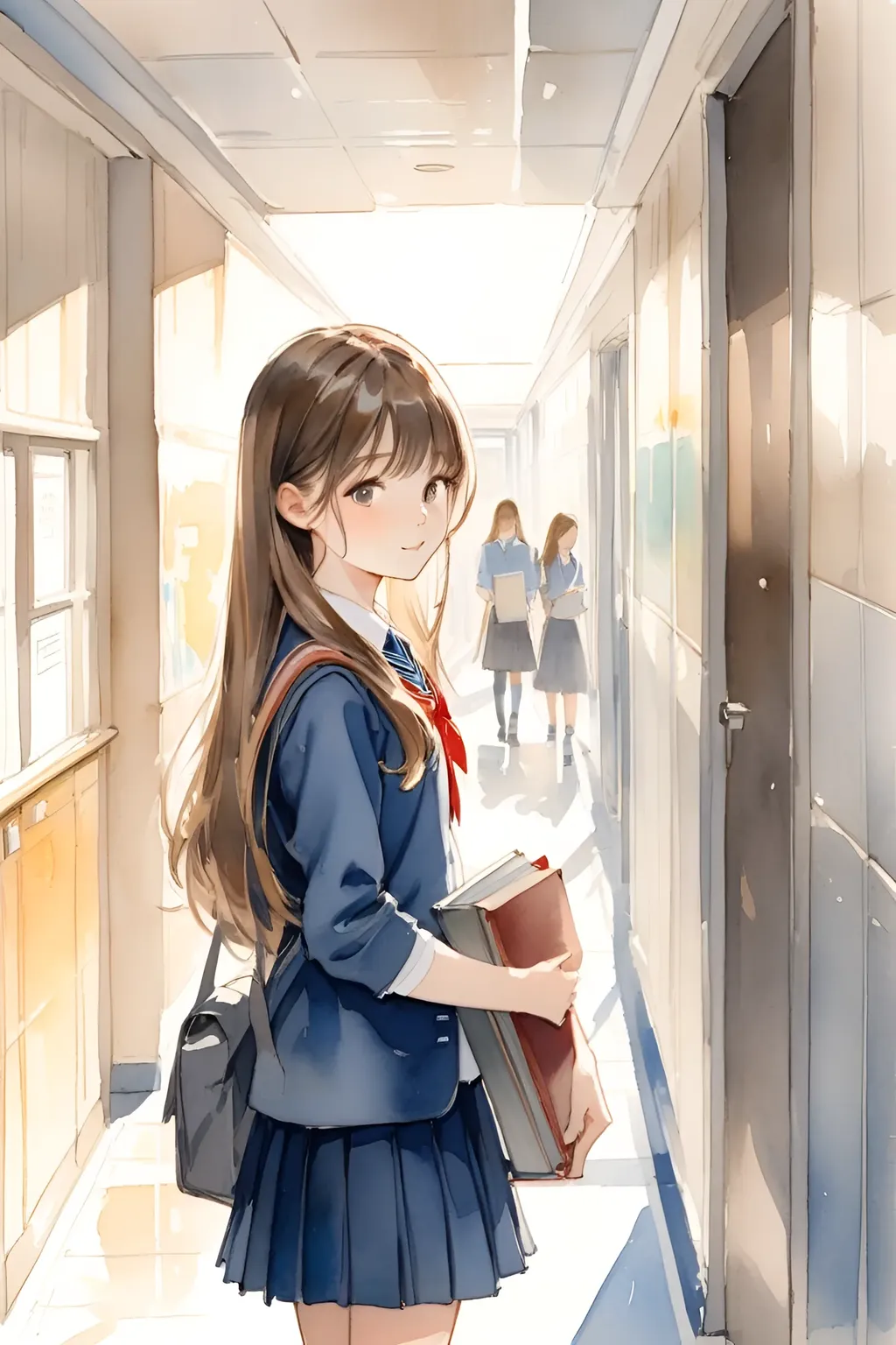 小苏抱着一摞作业匆匆朝语文老师办公室走去。这时,一位同学不小心撞了她一下,随着“啊”的一声,作业七零八碎的洒落了一地。 正在小苏愁眉苦脸的捡拾作业时,耳边突然响起了亲切的话语:“让我来帮你,好吗?”小苏抬眼望去,只见一位少年弯下腰来,把小苏散落的作业本全都捡了起来,递给小苏。 “谢谢你。”小苏感激的说。 “没事……” 小苏继续走向语文老师办公室,少年望着她的身影,直至消失不见。