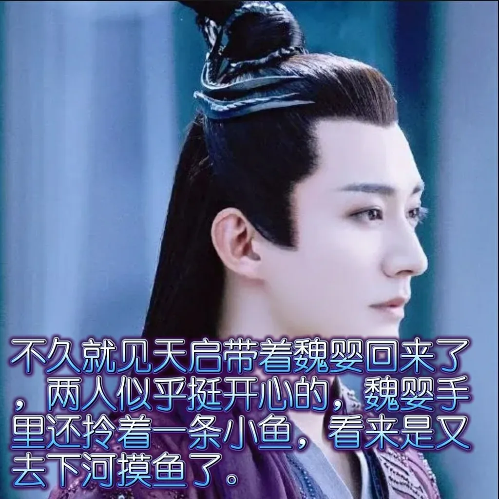 不久就见天启带着魏婴回来了,两人似乎挺开心的,魏婴手里还拎着一条小鱼,看来是又去下河摸鱼了。
