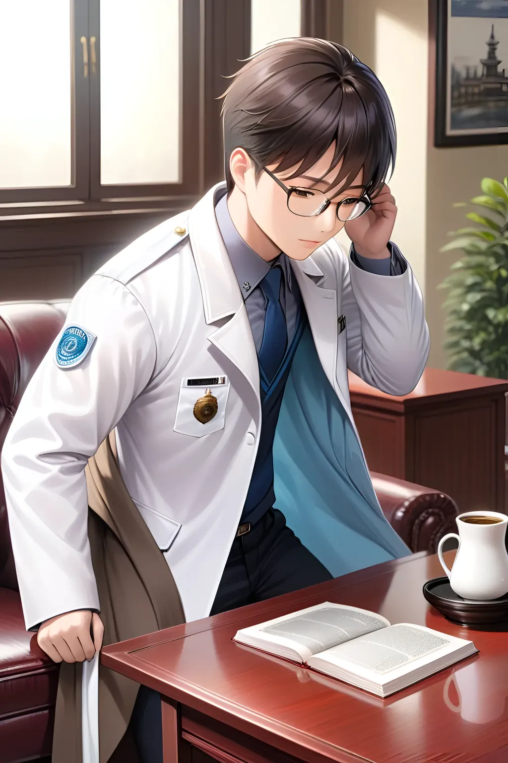 黄警官把帽子摘下,转身进屋拿了个白大褂套在身上,又在茶几上拿了个眼镜戴上。 “不认识我了?”