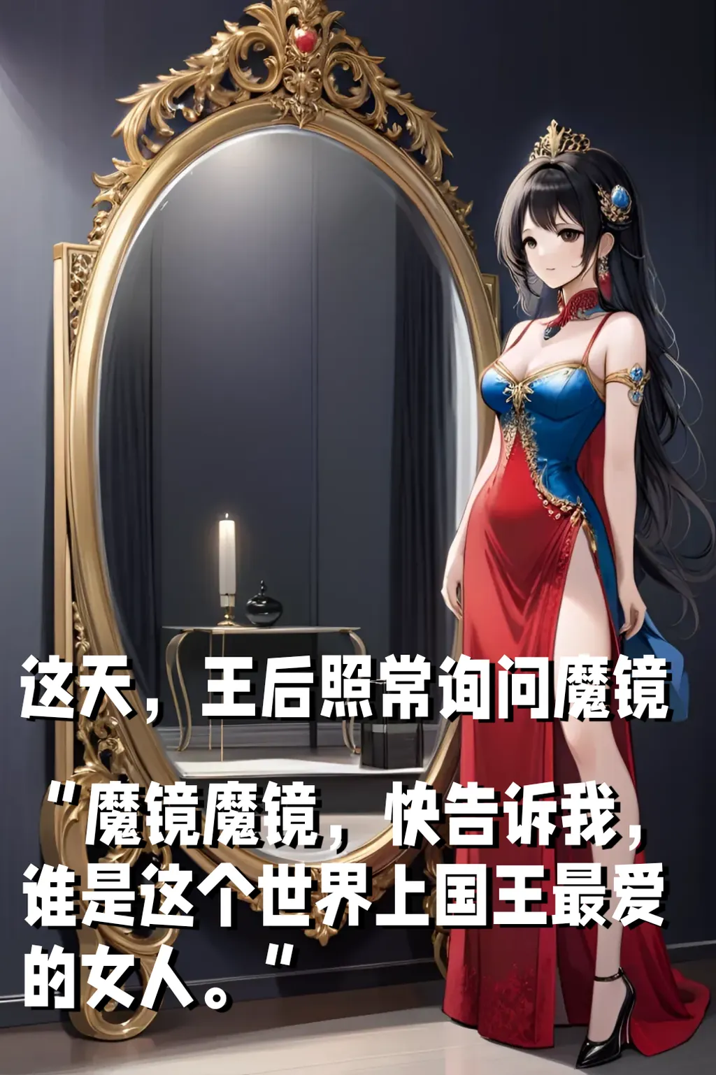 这天,王后照常询问魔镜 “魔镜魔镜,快告诉我,谁是这个世界上国王最爱的女人。”