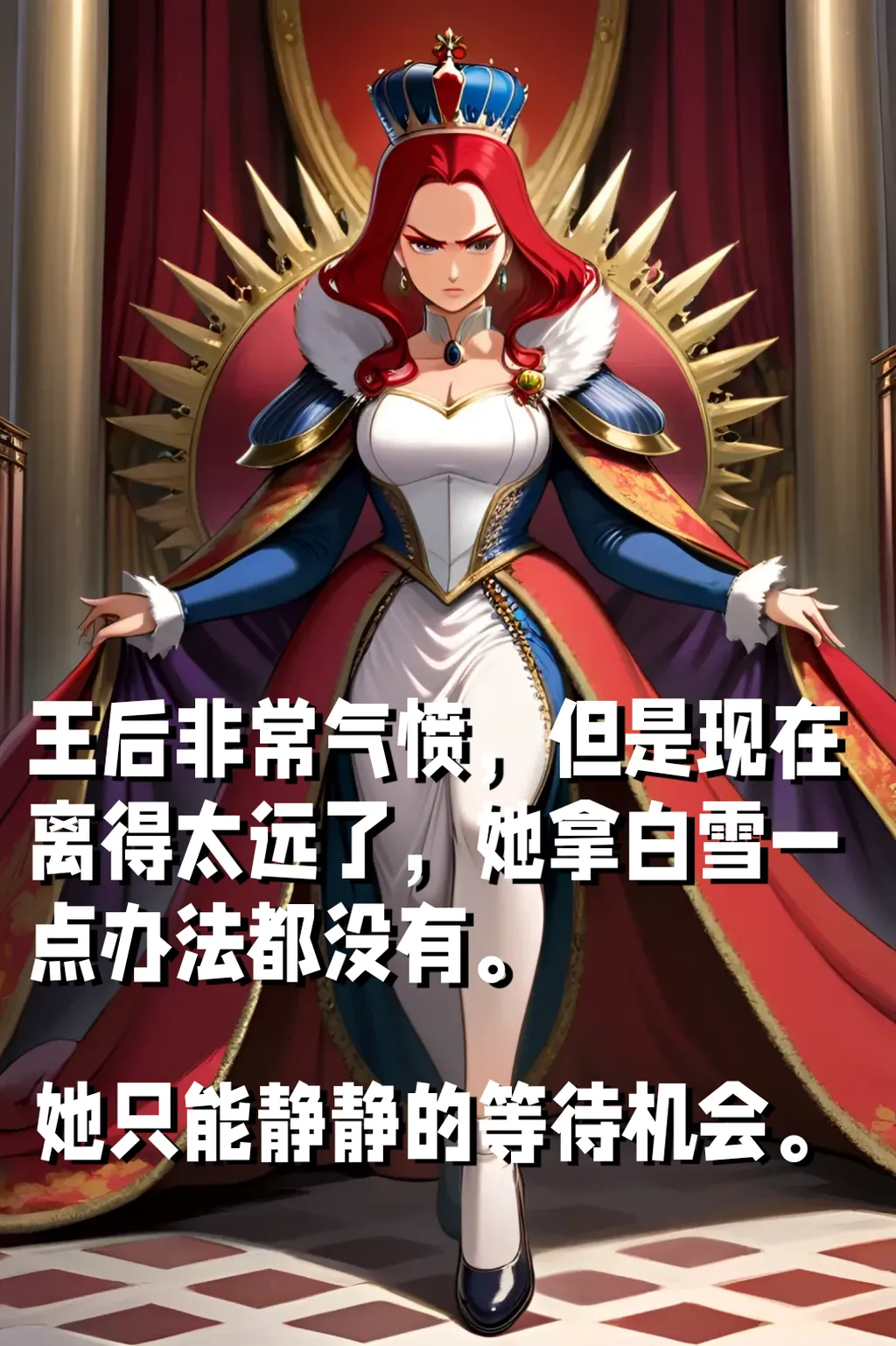 王后非常气愤,但是现在离得太远了,她拿白雪一点办法都没有,她只能静静的等待机会。