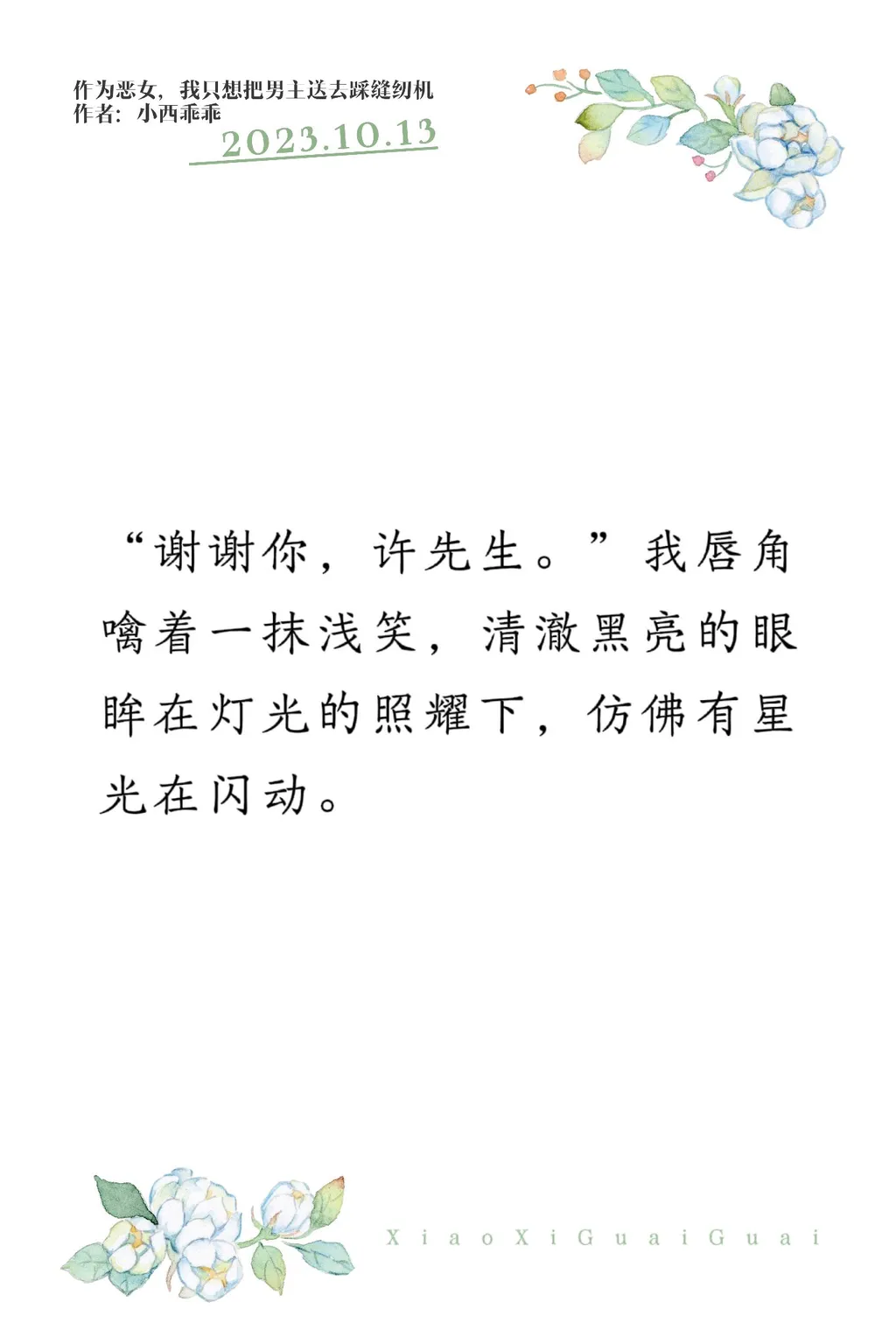 “谢谢你,许先生。”我唇角噙着一抹浅笑,清澈黑亮的眼眸在灯光的照耀下,仿佛有星光在闪动。