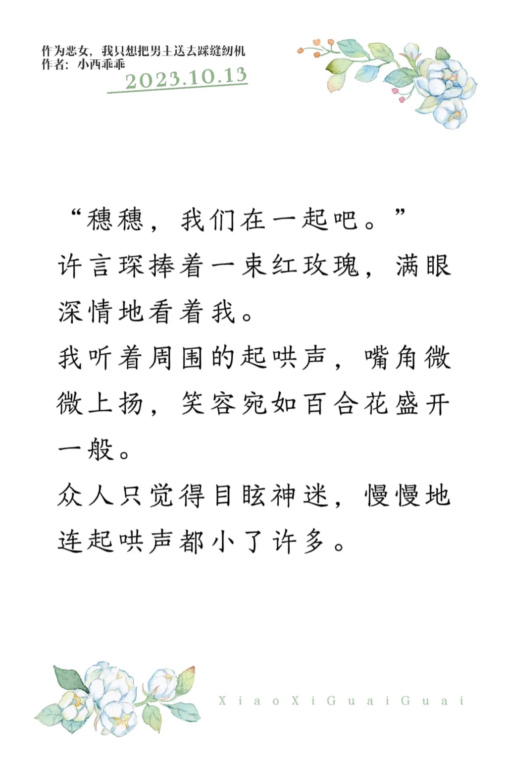 “穗穗,我们在一起吧。” 许言琛捧着一束红玫瑰,满眼深情地看着我。 我听着周围的起哄声,嘴角微微上扬,笑容宛如百合花盛开一般。 众人只觉得目眩神迷,慢慢地连起哄声都小了许多。