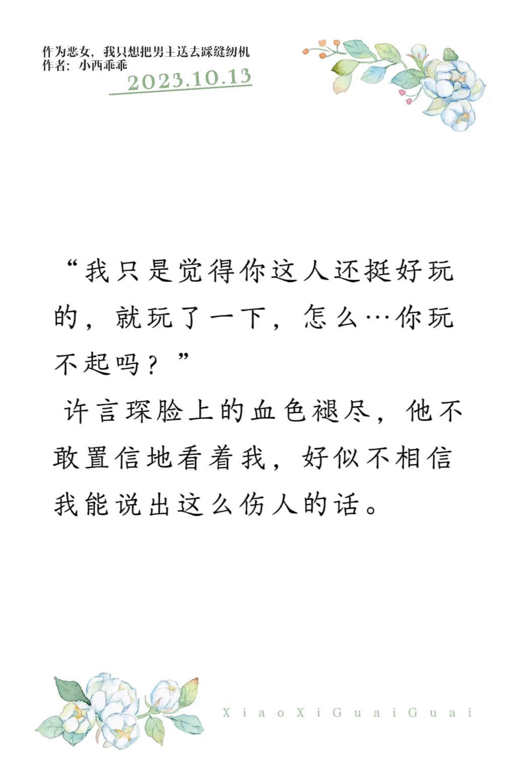 “我只是觉得你这人还挺好玩的,就玩了一下,怎么…你玩不起吗?” 许言琛脸上的血色褪尽,他不敢置信地看着我,好似不相信我能说出这么伤人的话。