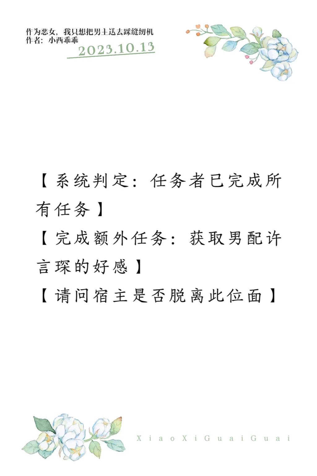 【系统判定:任务者已完成所有任务】 【完成额外任务:获取男配许言琛的好感】 【请问宿主是否脱离此位面】