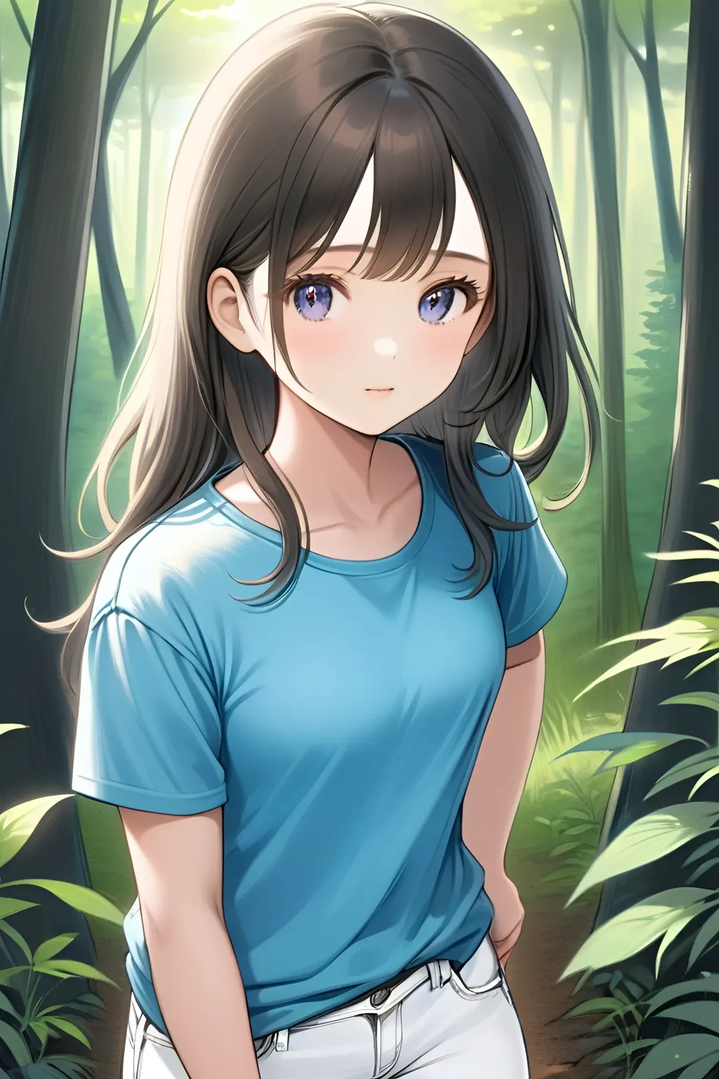 听到我的声音,女孩寻声从大树后面走了过来。
