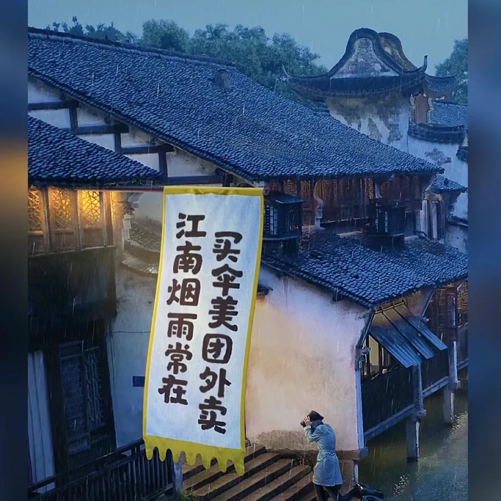 古镇美食 •龙凤面店、状元楼:本地人爱去的馆子,双浇 面是当地特色 春兰茶室:南浔本地特色三道茶 百间楼有很多本地饭店,摆一个椅子在河边,一边看摇橹船驶过,一边看古镇风景很愜意。 兩天烟雨江南的风景也别有韵味,如果被困在江南的烟雨里,可以美团外卖快速送伞,30分钟送 达哦~