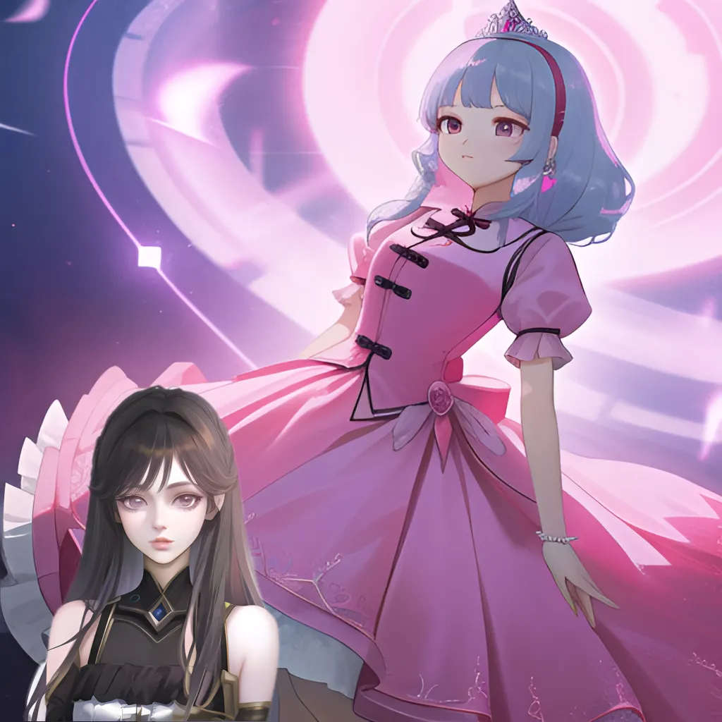 她用粉色草莓皮筋绑了个双马尾,在眼角贴上镭射星星亮片,穿上粉色蓬蓬裙,拿上粉红猫耳兔玩偶让我拍照。