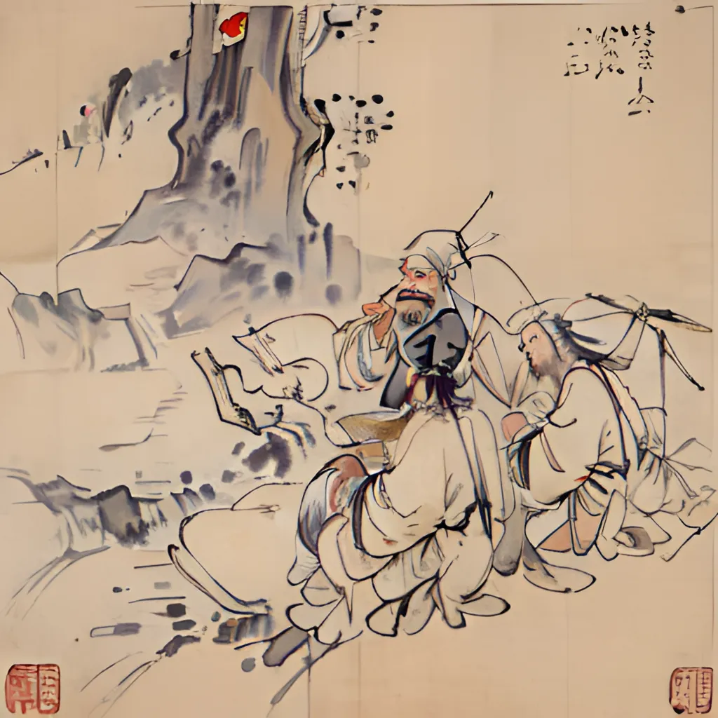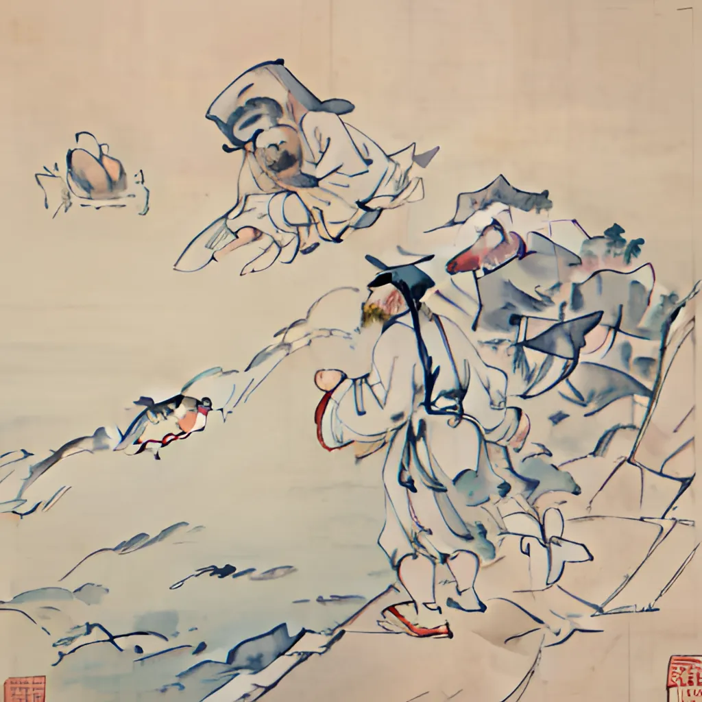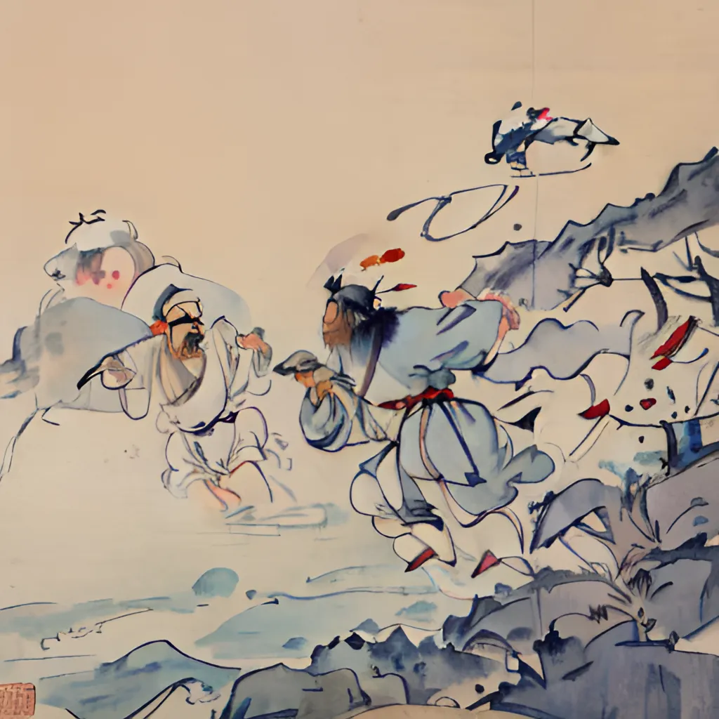 他一脚就踏到了大海边,冲着五长腿说道:“五哥,正事还没说完,你怎么摸起鱼来了?” 六大脚话还没说完,七大口赶来,不耐烦他说:“皇帝怎么能讲理!讲理他就不当皇帝了。” 他连和兄弟们商议也没商议,一口就把大海里的水喝干了。他回过头来,又一张嘴,海水从他口里一股劲地喷了出来,海水浪滚翻腾地向皇宫冲去,冲倒了层层的高墙,把皇帝和文官武将都淹死了。