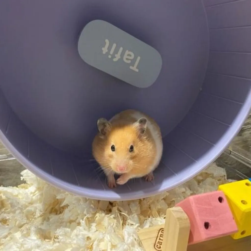 可是,真的好饿呀,饿的我睡不着了。我歪着身子,正好看见我的大跑轮。跑步运动应该能够让我不饿吧?