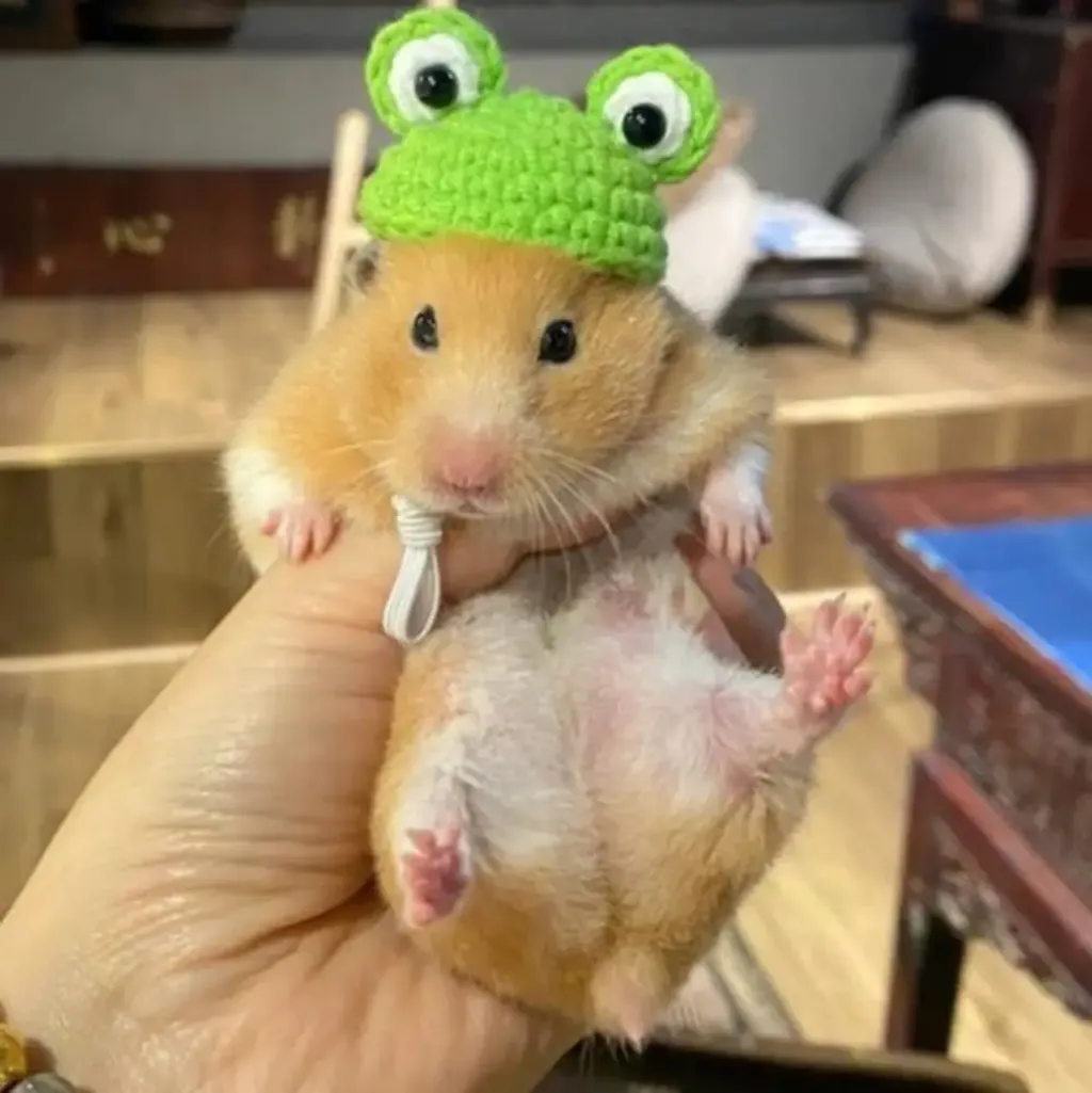 “嘿嘿嘿……这个青蛙帽子真的好可爱呀!小白,你戴这个真的越来越可爱了呢。”