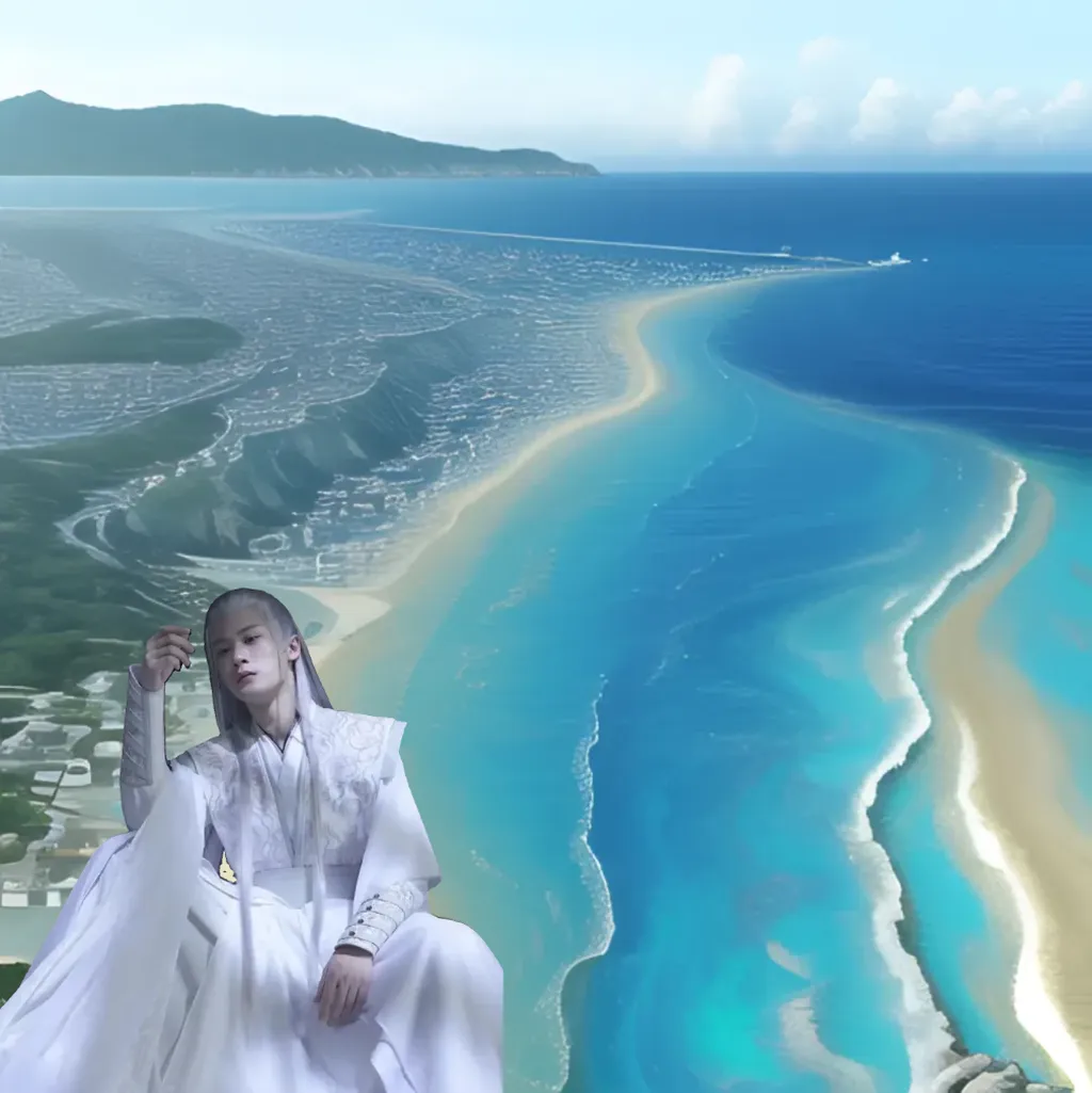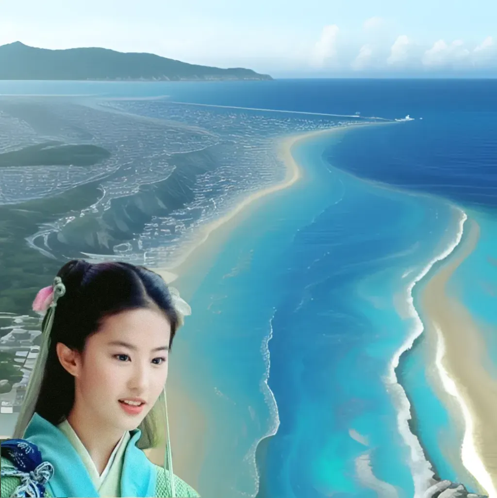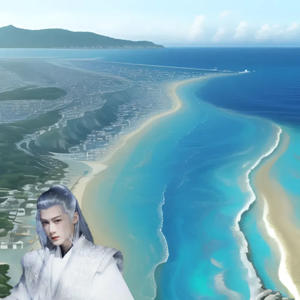 灵儿惊奇的看着大海,“哇,好蓝啊,好漂亮呀!这是灵儿第一次看见海呢。”